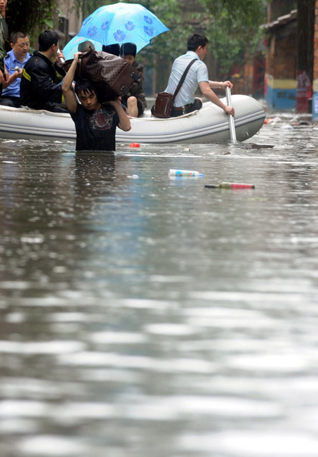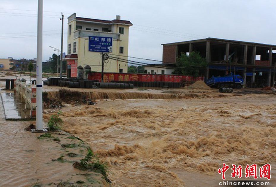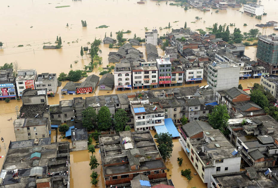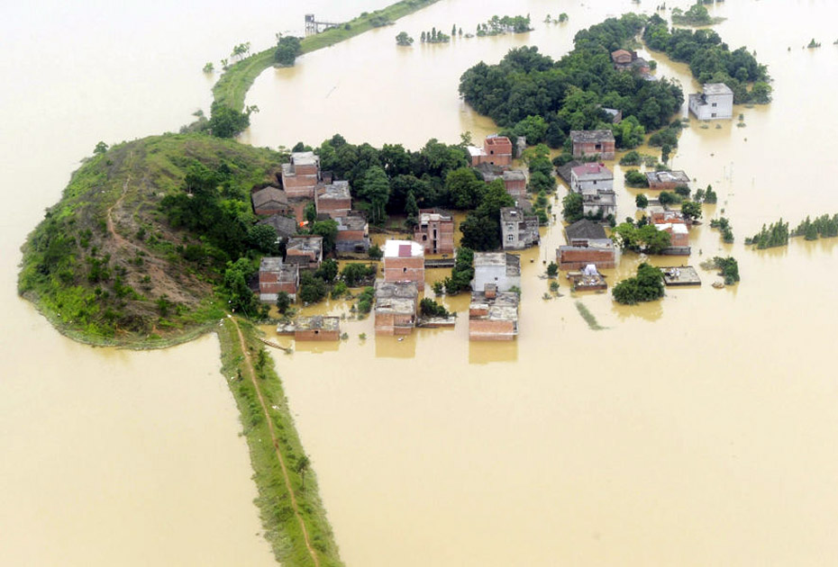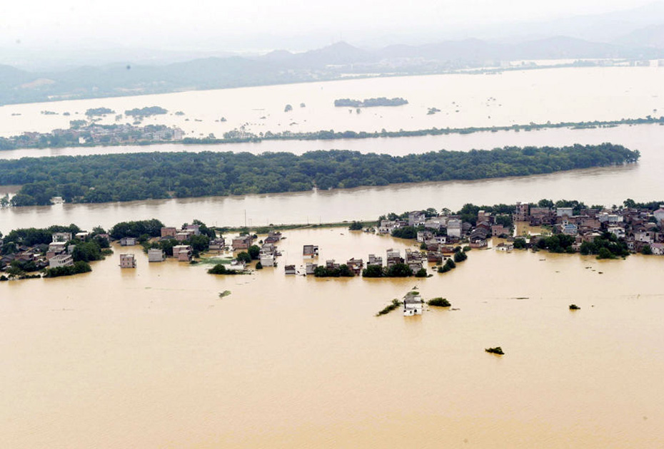 6月22日航拍的江西省抚州市唱凯堤决口附近受灾乡村。 目前,持续暴雨已经造成江西抚河流域发生特大洪水,引发严重洪涝灾害。田景玥 摄 图片来源:新华网