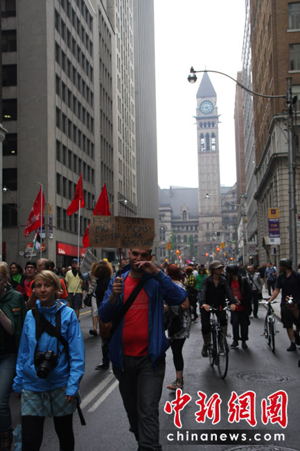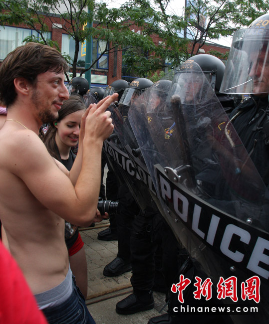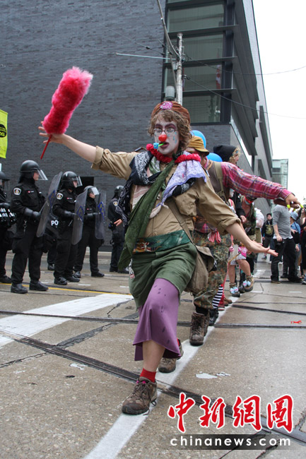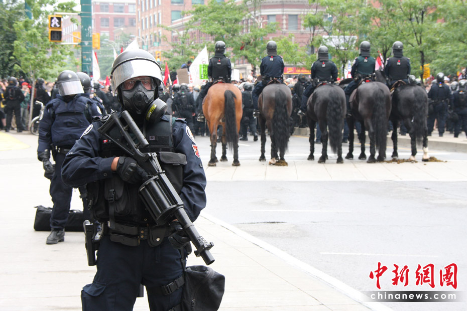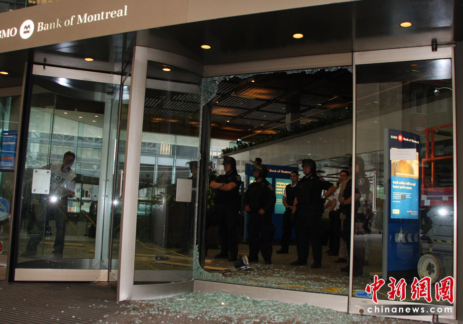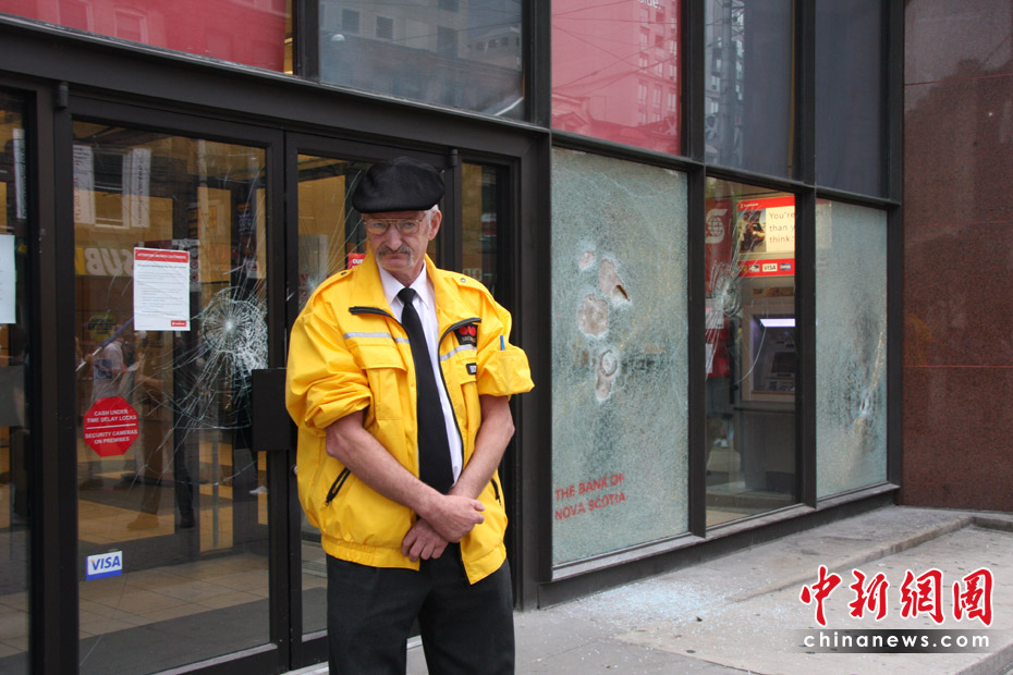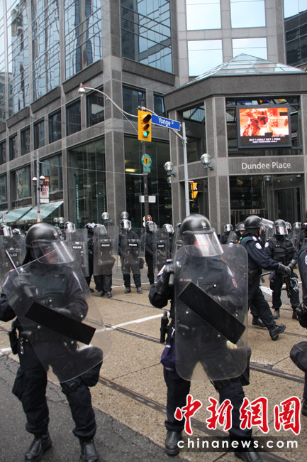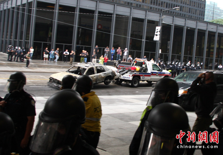在加拿大多伦多举行G20峰会期间,反峰会的一些团体26日举行大规模游行示威抗议活动。在一些街道,多间银行和商铺店面受损,至少四辆警车被烧毁。捷克佳 摄