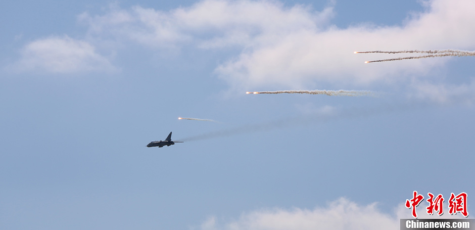 8月12日,“和平使命-2013”联合反恐军演中俄两军参演部队在切巴尔库尔合同训练场举行全员全要素实兵协同训练。双方共出动官兵近900人,坦克、步战车、直升机等武器装备约130台,双方导演部总导演——俄中部军区司令员波格诺夫斯基和沈阳军区副司令员石香元,共同到演习地观摩并指导两军训练。图为空军战斗群一架战斗机在训练中。中新社发 李祥辉 摄