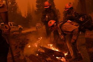 美国消防员用嘴喷水灭火