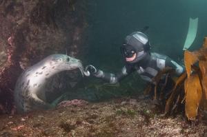 潜水者与海豹嬉戏