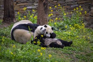 大熊猫享受春光