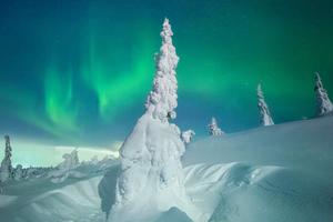 俄罗斯雪树极光美景