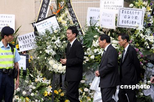 全国政协副主席霍英东的追悼会,7日上午八时半在香港殡仪馆举行,众多政府官员、商贾、著名人士到场出席,场面隆重。民建联主席马力、副主席叶国谦、曾钰成出席追悼会。中新社发 洪少葵 摄