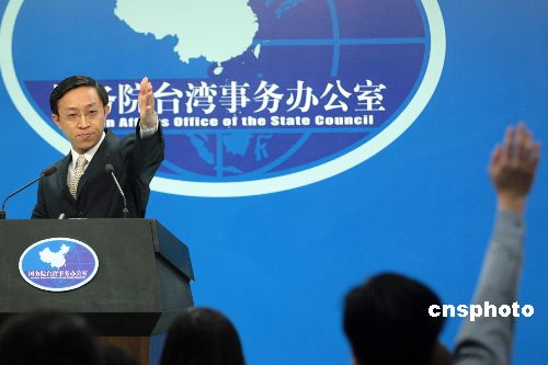 四月二十五日,中国国务院台湾事务办公室在北京举行例行新闻发布会,国台办发言人杨毅就第三届“两岸经贸文化论坛”的相关情况回答了记者的提问。杨毅称,由国共两党有关机构共同举办的第三届“两岸经贸文化论坛”将于4月28日—29日在北京举行,出席本次论坛的代表共约500人,其中台湾方面的代表近300人,大陆方面的代表200多人,两岸各界人士将就两岸直航、两岸教育交流与合作、大陆居民赴台旅游等议题进行深入的、广泛的交流。中新社发 盛佳鹏 摄