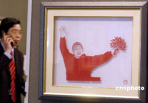 迎接北京奥运,“中国人的骄傲”剪纸艺术展四月七日在香港举行。展出精品包括中国现代剪纸艺术家卢雪历时一年创作、展现百多位中国奥运冠军运动员风采的剪纸作品。图为悉尼奥运会女子柔道冠军袁华的英姿。 中新社发 谭达明 摄