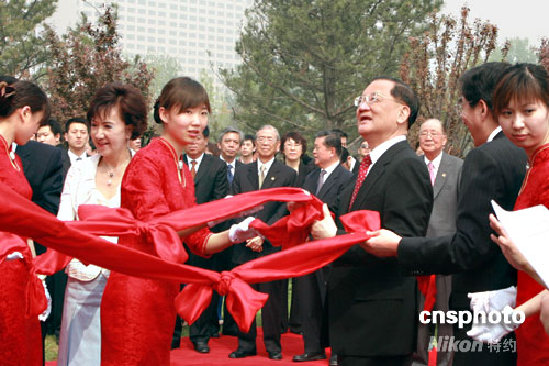 连战出席北京奥运村“水袖”雕塑安放仪式