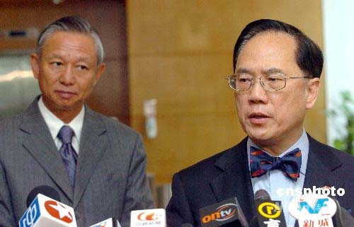 五月十三日,香港特别行政区行政长官曾荫权在香港会见传媒,慰问四川大地震灾民,并表示特区政府会尽力支援及配合,将兵分三路协助中央救灾。中新社发 邓庆乐 摄