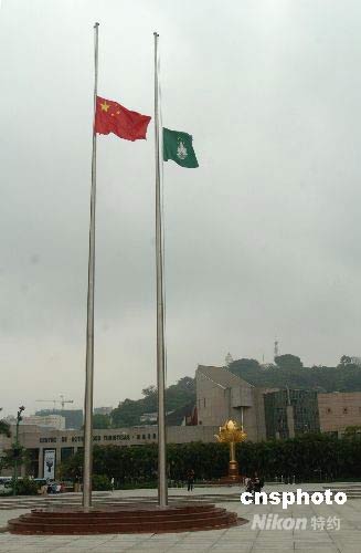 悼念四川地震遇难同胞 澳门降半旗致哀