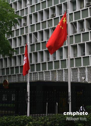 五月十九日是全国哀悼日,香港特区政府下半旗,对四川大地震遇难者表示深切哀悼。中新社发 武仲林 摄