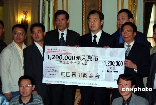 法国青田同乡会十九日通过中国驻法大使馆,向四川地震灾区捐款,支持抗震救灾。至今,旅法侨胞向四川地震灾区捐款已超过一千万元人民币。