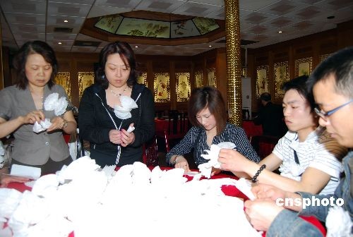 在中国“全国哀悼日”期间,法国华侨华人妇女联合会的一些会员自发组织起来,折叠大量纸花,供旅法侨胞、留学生等到中国驻法使馆悼念汶川地震遇难同胞。