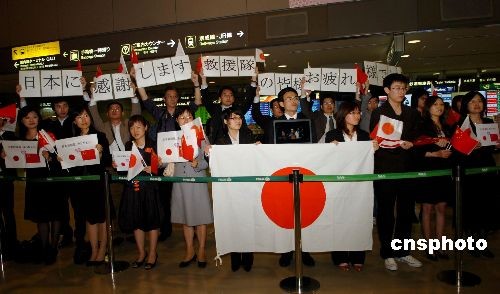 5月21日上午,数十位在日华人华侨自发来到成田机场,欢迎从四川地震灾区归来的日本国际紧急救援队。他们手持中日两国国旗和书有“中国人感谢日本”、“救援队的诸位辛苦了”的横幅,向支援中国抗震救灾的救援队队员表示感谢。