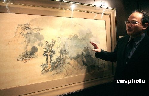 五月五日,香港佳士得举办“中国古代书画”、“中国近现代画”精品预展。图为展出的张大千作品《红满山》。中新社发 张勤 摄