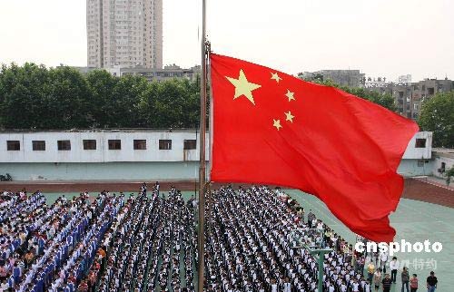 湖北襄樊中学降半旗哀悼地震遇难者