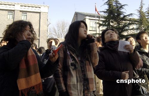 2月27日,中央戏剧学院在北京初试发榜,众多考生和家长怀着忐忑的心情前往看榜。虽然不少名校今年减少了招生名额,但艺术类考试热度依然不衰,不菲的支出和重重严格筛选也难阻考生争过“独木桥”的脚步。中新社发 徐曦弋 摄