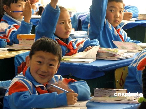 3月10日,西藏拉萨中小学全部开学,学生们初春迎来新学期。图为大昭寺附近的拉萨第一小学教室中上课的孩子们。中新社发 刘舒凌 摄