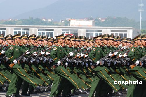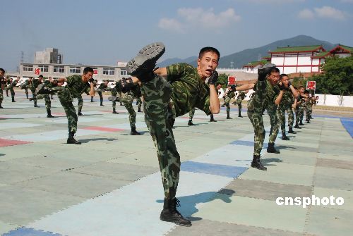 为庆祝建军八十周年,福建省武警总队日前在福州举行军事训练成果汇报表演,展示武警部队威武之师、文明之师的良好形象。中新社发 曾朝群 摄