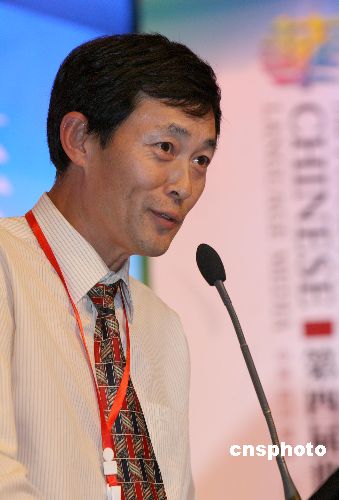 9月3日,正在四川成都举办的第四届世界华文传媒论坛进行大会发言,图为美国天羿传媒文化公司总监孙晓光作题为《谁为中国说话》的发言。中新社发 张勤 摄