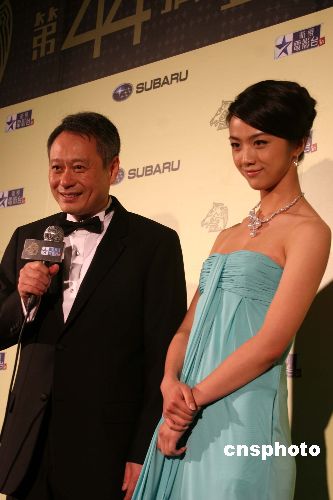 十二月八日晚,第四十四届金马奖颁奖典礼在台北小巨蛋举行。李安获得最佳导演奖,右为夺得新人奖的汤唯。