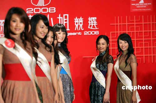 1月9日,参加香港TVB主办的“2008国际中华小姐竞选”的23位佳丽,在香港黄金海岸酒店靓丽登场,与传媒会面。中华小姐竞选本月26日将在广东佛山举行。中新社发 洪少葵 摄