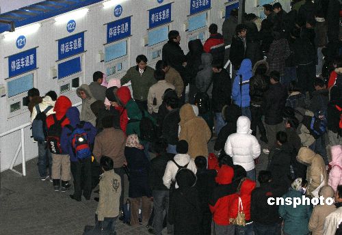 2008年1月29日,受南方恶劣天气影响,北京西站暂时停售了京广线株洲以南列车的车票,如旅客选择放弃旅行,可以全额退票。北京西站已在北广场121至130窗口,新开辟了10个退票窗口。中新社发 鲁谷 摄