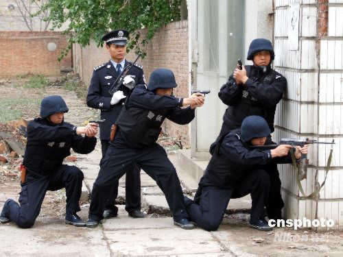 4月11日,河南濮阳市在一家废弃的化工厂内举行了代号为“龙乡卫士一号”的反恐怖实战演练。实战演练演示了处置危险化学品爆炸火灾、缉拿恐怖分子等反恐行动。演练共有200余名公安干警、驻军部队、武警和消防官兵,以及卫生、环保、电力等人员参加。通过实战演练的举行,展现了军警民协同作战,处置恐怖袭击事件和重大突发事件的能力和水平。中新社发 刘敬宽 摄