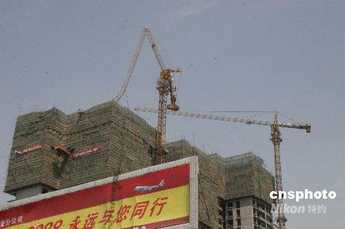 西安感觉强烈震感,一个正在施工的建筑工地吊塔在高空被震断,操作员当场摔下身负重伤,其他建筑工人被紧急疏散。目前伤员正在医院抢救,尚未脱离生命危险。中新社发 王振001 摄