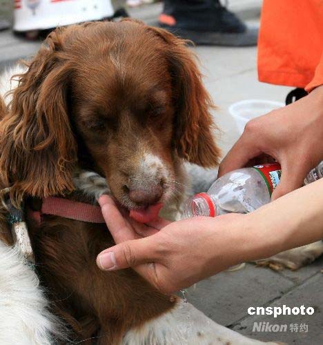 组图:消防搜救队给搜救犬喂水(6)