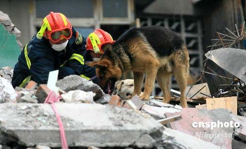组图:消防搜救队和搜救犬紧张工作(8)