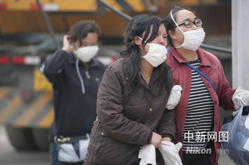 面对悲伤的人们,消防官兵所能做的就是与时间赛跑,抢救生命。 王亮 摄