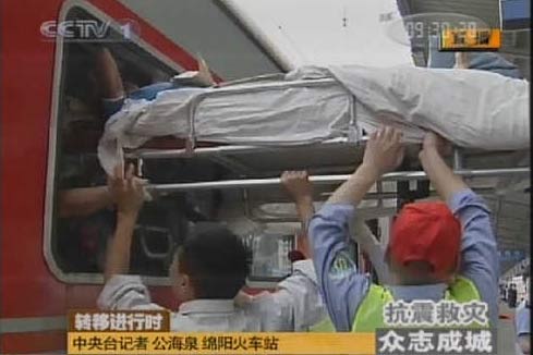 图:绵阳火车站转移大批伤病员(2)