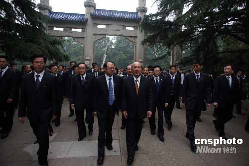 5月27日,中国国民党主席吴伯雄率领的大陆访问团拜谒中山陵。他将率团在南京、北京、上海三地展开6天的大陆访问行程。中新社发 盛佳鹏 摄