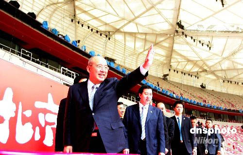 图:中国国民党主席吴伯雄一行参观"鸟巢"