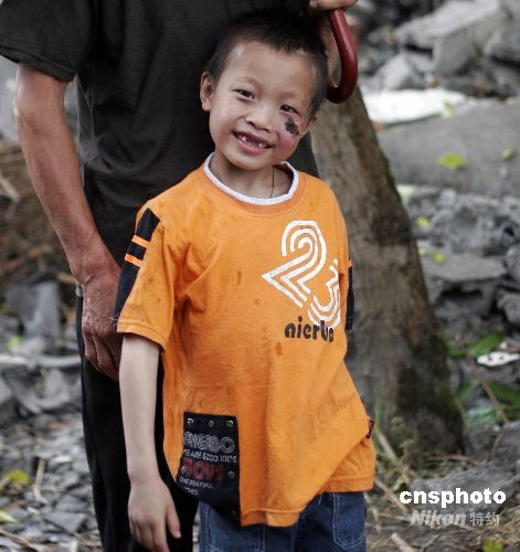 图:震后余生的孩子重展笑容
