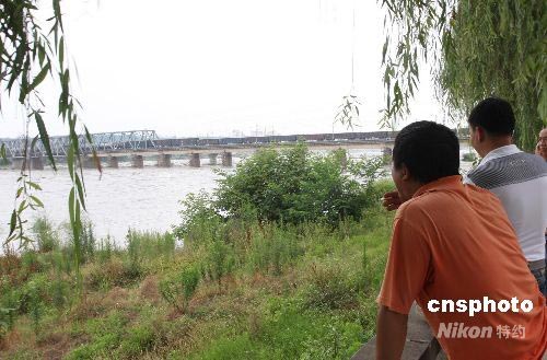 图为上游堰塞湖带来的洪水已安全通过宝成铁路涪江大桥处,市民纷纷立足观看。中新社发 黄荣 摄