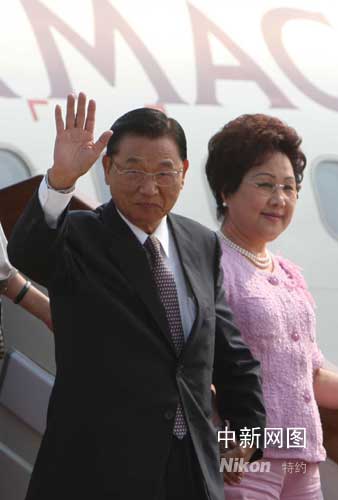 图:江丙坤一行抵达北京首都机场