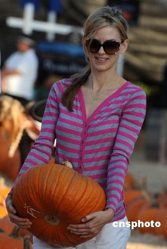 图:万圣节临近 美女抱得南瓜归