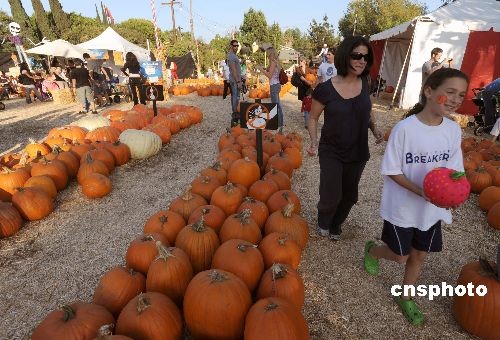 “万圣节”将至,许多美国洛杉矶市民来到远近闻名的贝弗利山庄“骨头先生南瓜田”,选购自己中意的南瓜,准备自制南瓜灯,为即将到来的万圣节营造节日气氛。中新社发 张炜 摄