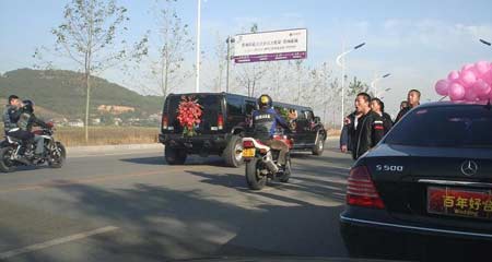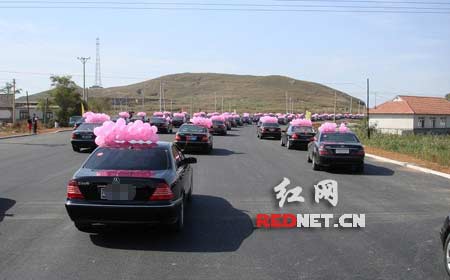 “太排场了,等于是烧钱啊!”11月12日晚上,网友“pengjing”在红网论坛发帖爆料,称在网上看到被指为大连一开发商儿子的豪华婚礼照片,太奢华了,过于铺张浪费。帖子显示:“9月28,我出婚车史上说没见过的场面,在大连庄河,新款千禧奔100辆,加长悍马头车,数辆公路赛,吉普没数!”同时,也有网友称有钱想怎么花就怎么花,无可厚非。