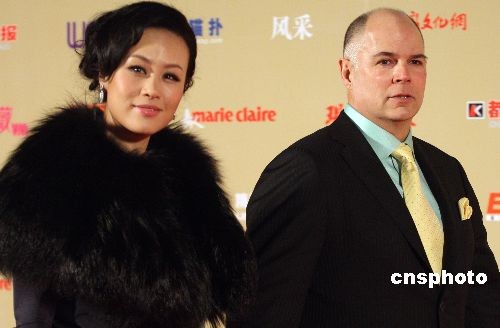 12月15日,2008星光大典在北京欢乐谷华侨城举行,是次星光大典对电影、电视、音乐、时尚等领域进行全景式的盘点,来自中国两岸三地、日韩最炙手可热的百多位明星亲临现场,共赴星光璀璨的星光之夜。图为邬君梅携丈夫优雅从容出席2008星光大典。中新社发 钱兴强 摄