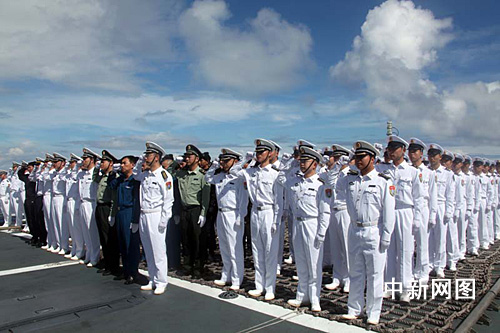 中新网“海口”舰12月28日电(记者 孙自法)12月28日上午,南中国海当天艳阳高照、海风吹拂,中国海军护航舰艇编队护航官兵列队甲板,隆重举行“走向大洋”宣誓仪式。