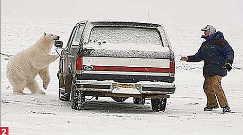 惊险瞬间:北极熊绕车追赶美国男子(2)