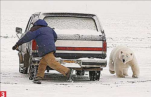 惊险瞬间:北极熊绕车追赶美国男子(3)