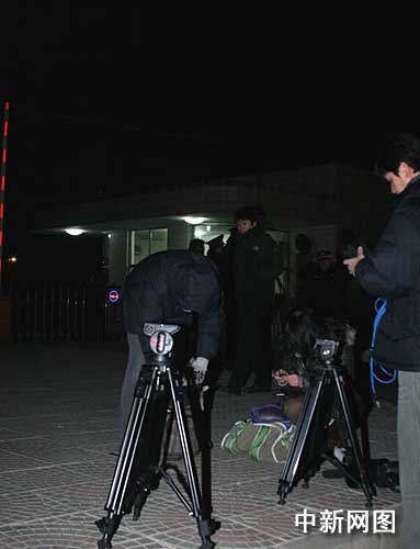 图为凌晨6点在法院大门前等待的媒体记者。翟羽佳 摄