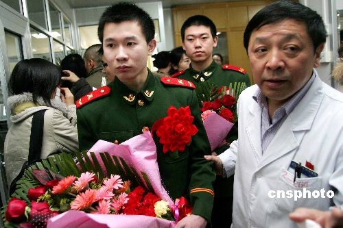 2月17日,在扑救2月9日晚央视新址北配楼大火中受伤的5名消防官兵,在北京朝阳医院的救治下康复出院,医院医护人员举行了简短而隆重的欢送仪式,为消防官兵送上祝福。目前,因吸入有毒有害、高温气体造成肺部严重损伤的消防中队长张少辉仍需留院观察。