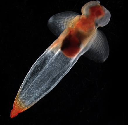 另外,在透明身躯里长出一对对咖啡色像是肋骨的构造,没有心脏构造却能活得好好的生物,则是“纽虫”。