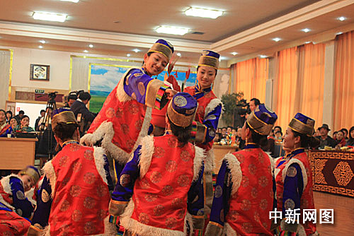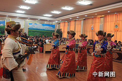 2月25日是藏历新年初一,甘南首府合作地区工作的藏族官员和民众下午汇集甘南饭店举行联欢庆新年。