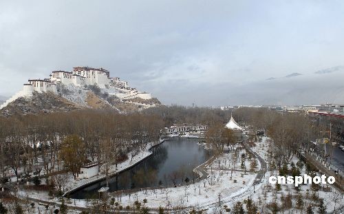 2月25日凌晨,拉萨地区普降瑞雪。这场牛年里的首场春雪,对于净化空气、缓解旱情极为有利。雪后的高原,到处是银装素裹,美景如画,给欢度藏历新年的人们带来意外的惊喜。中新社发 龙昊 摄