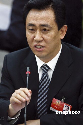 3月4日,全国政协十一届二次会议在北京进行分组讨论,全国政协委员、恒大地产主席许家印在分组讨论上建议降低房价,让利于民。中新社发 盛佳鹏 摄